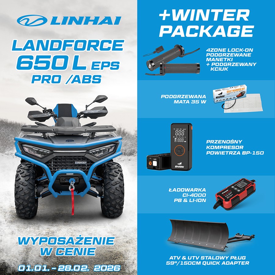 Oficjalny importer quadów Linhai w Polsce, firma ASP Group PL Sp z o.o. oraz ASP Group s.r.o. w Czechach i Sowacji od 2014 roku - cieszymy się, że JIANGSU LINHAI POWER MACHINERY Co. Ltd., widzi w nas silnego i wiarygodnego partnera, a my możemy potwierdzić, że z roku na rok wzrasta jakość oraz poziom techniczny pojazdów LINHAI. Aktualne modele pojazdów ATV i UTV są teraz na zupełnie innym poziomie pod względem wzornictwa, technologii wykonania i niezawodności niż pierwszy model Linhai Stormer lub ATV 260 LH, które były na rynku w roku 2007. Obecna generacja pojazdów Linhai oferuje quady w pełni zgodne z filozofią firmy ,Polski Importer , zapewnia naszym klientom wysokiej jakości, niezawodne i sprawdzone produkty oraz oryginalne części zamienne